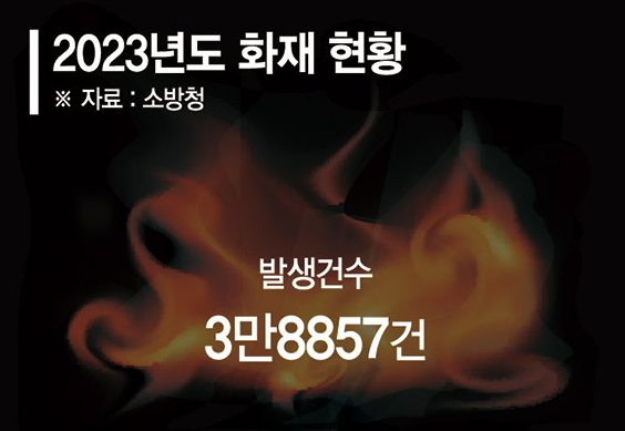 15일 한국화재보험협회에 따르면 최근 기후위기 심화 및 대형 화재 빈발로 피해 규모가 커지고 있다. 소방청이 지난 2023영 화재 발생 통계를 분석한 결과대부분의 장소에서 화재 발생 건수가 줄었지만 주거시설 및 차량 화재는 증가했다.